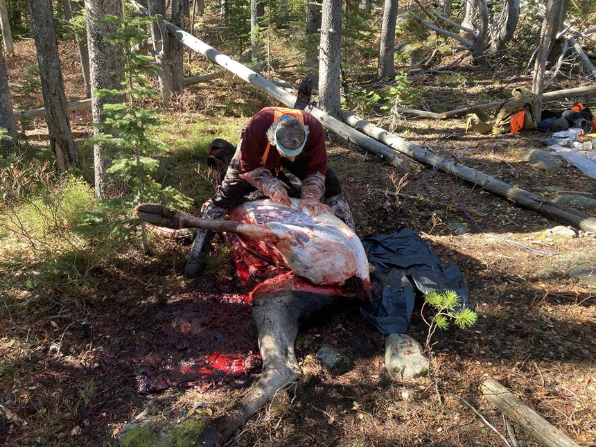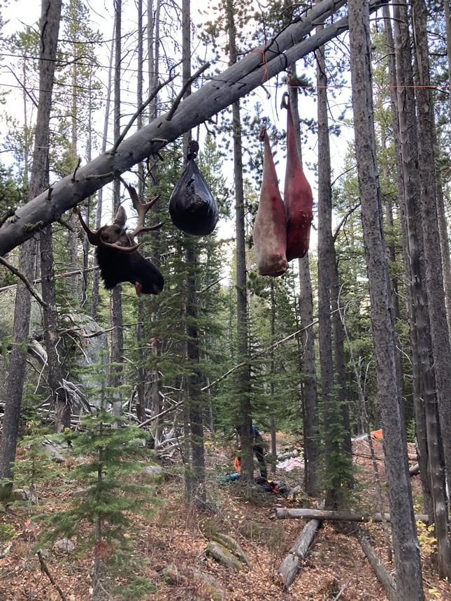 Dear Wayne, I wanted to thank you . I purchased Love , Thunder & Bull volume 1&2 along with the Bull Magnet . I had a moose tag in the Spanish Peaks area in southwest Montane near Bozeman . There are not a lot of moose anymore in that unit but using the tactics and calling methods I learned from watching your videos I did harvest a bull moose . It was a ton of work . I ended up shooting my moose 11 1/2 miles from the trailhead. I have friends with mules and we are going back in tomorrow to retrieve the meat . Between my son and I we got all the quarters , hide , and head , ( doing a euro Mount ) hung in the trees . It’s Bear proof ! We did an excellent job . Again many thanks to your passing on of such valuable knowledge. I would have never known how to even begin to hunt a moose but I feel now after everything I’ve experienced that I could kill a moose pretty consistently if this were a tag that I could purchase every year . Unfortunately that’s a once in a lifetime opportunity for us residents of Montana so I’m really thankful I found you . You were a big part of the reason for my success. Best wishes to you Wayne .